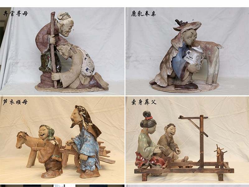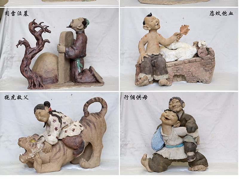 孝是中國(guó)古代重要的倫理思想之一,元代郭居敬輯錄古代24個(gè)孝子的故事,編成《二十四孝》,序而詩(shī)之,用訓(xùn)童蒙,成為宣傳孝道的通俗讀物。我們目前正在設(shè)計(jì)制作的《二十四孝》大型陶藝民俗情景組合群雕,凝聚了古圣先賢智慧,集儒家思想與孝道于一體的《二十四孝》為題材,采用陶藝的形式,精心設(shè)計(jì)制作而成。旨在傳播中國(guó)傳統(tǒng)文化,弘揚(yáng)社會(huì)傳統(tǒng)美德,教育人們學(xué)會(huì)感恩,懂的回報(bào),孝親尊老,明禮誠(chéng)信,凝聚社會(huì)正能量,構(gòu)建文明和諧社會(huì)。